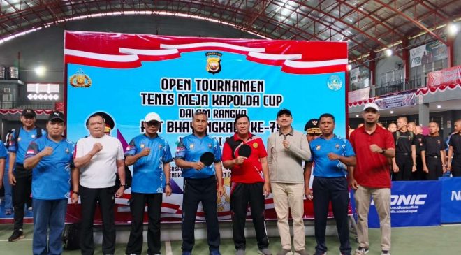 Bengkulu, Selimburcaya.com — Dalam rangka memeriahkan Hari Bhayangkara ke-78, Kepolisian Daerah (Polda) Bengkulu bersama Pengprov Persatuan Tenis Meja Seluruh Indonesia (PTMSI) Bengkulu menggelar Turnamen Tenis Meja Kapolda Cup 2025. Kegiatan ini resmi dibuka oleh Kapolda Bengkulu Irjen Pol. Mardiyono, S.I.K., M.Si di Sportatorium Universitas Muhammadiyah Bengkulu (UMB), Sabtu (12/7/2025).