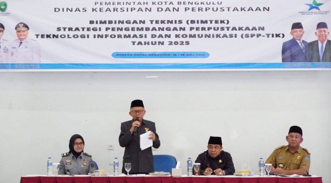 Bengkulu, Selimburcaya.com – Penjabat Sekretaris Daerah (Pj Sekda) Kota Bengkulu, Tony Elfian, membuka kegiatan Bimbingan Teknis Strategi Pengembangan Perpustakaan Teknologi Informasi dan Komunikasi (Bimtek SPP-TIK) Kota Bengkulu Tahun 2025. Acara ini berlangsung di Hotel Adeeva, kawasan Pantai Panjang, Bengkulu.